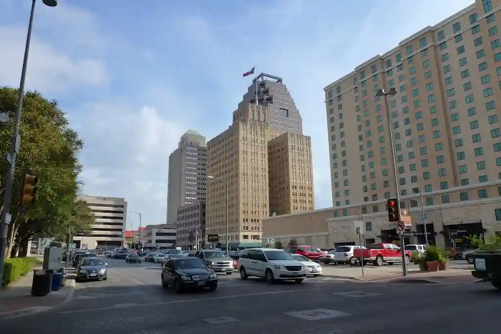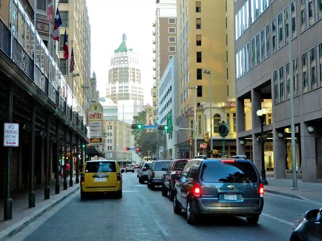 В 1877 году первая железная дорога была протянута до Сан-Антонио. Это означало, что он больше не являлся просто пограничным городом, а все сильнее стал привязываться к стилю жизни всего американского общества. В больших городах штата Техас, таких как Сан-Антонио, Даллас и Форт-Уэрт, железнодорожный транспорт развивался совершенно по-другому в сравнении с развитием железной дороги в городах-портах восточных штатов США. В начале 20-го века, для строительства трамвайных путей и удовлетворения новых потребностей автомобильного движения, в центральной части города были расширены улицы. В процессе этой модернизации, город лишился многих исторических зданий.