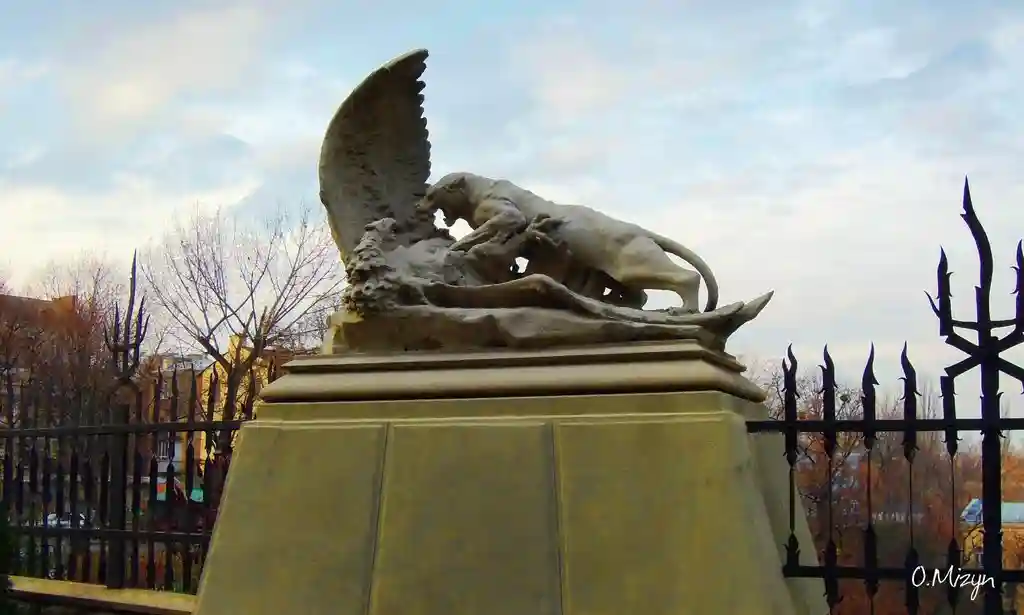 Борьба львицы и орла.Скульптурное оформление ограждения Фасад дома