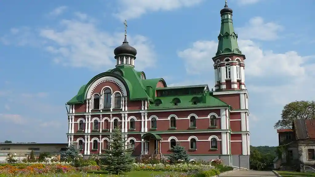 Был построен в 1905—1912 годы по проекту архитектора Е. Ф. Ермакова в Феофании (южный пригород Киева) на территории мужского скита, приписанного к Киево-Михайловскому Златоверхому монастырю.